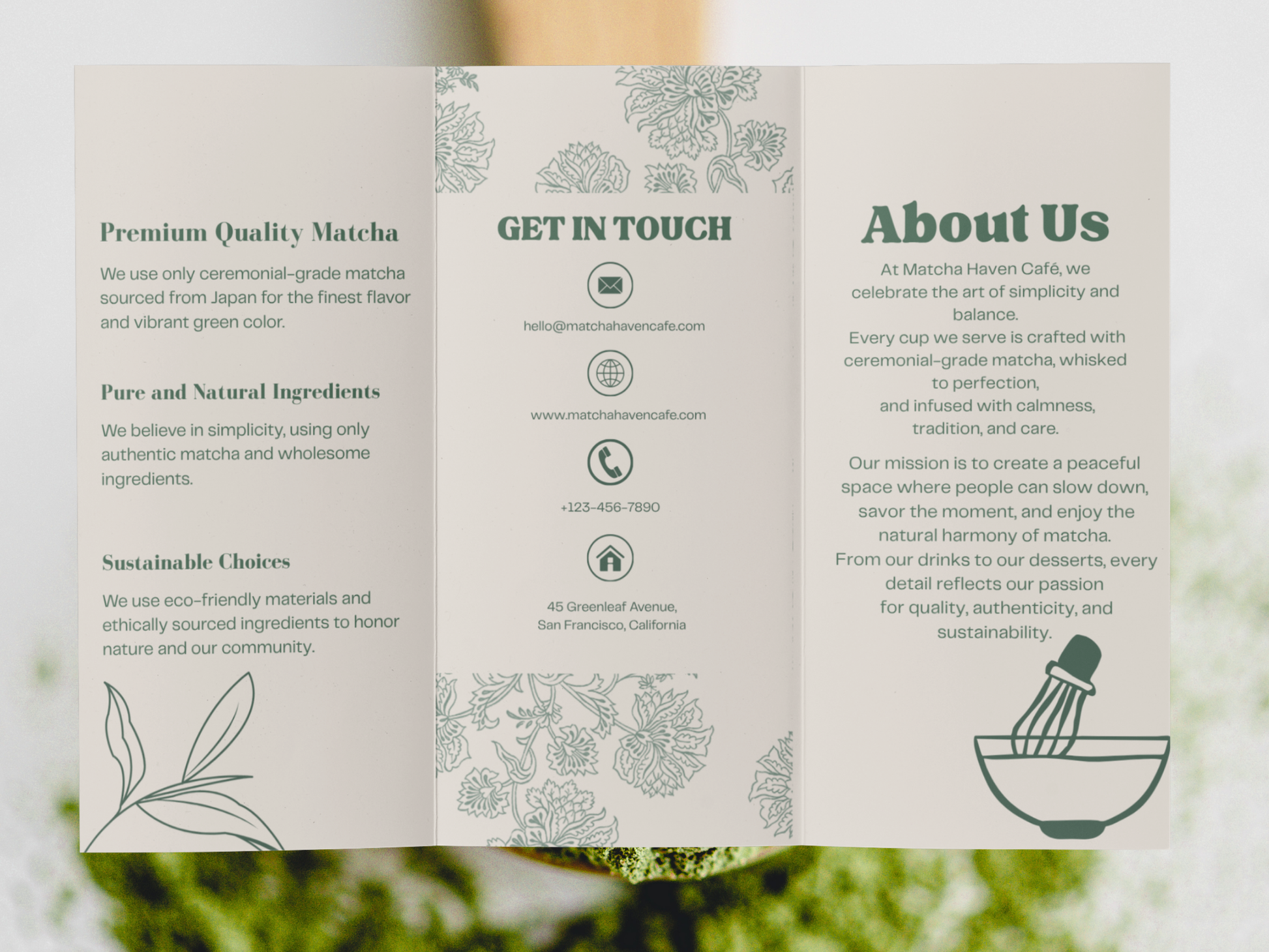 Whether you are a café, boutique, wellness brand, or creative business, our brochure design service helps you showcase your products and values with timeless elegance.